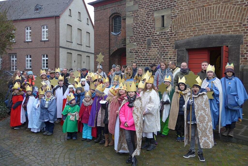 Nach einer kurzen Aussendungsfeier in der Kirche zogen 44 Mädchen und Jungen als Heilige Drei Könige gekleidet in 12 Gruppen von Tür zu Tür, um den Segen Gottes in die Häuser zu bringen und für Not leidende Kinder zu sammeln.