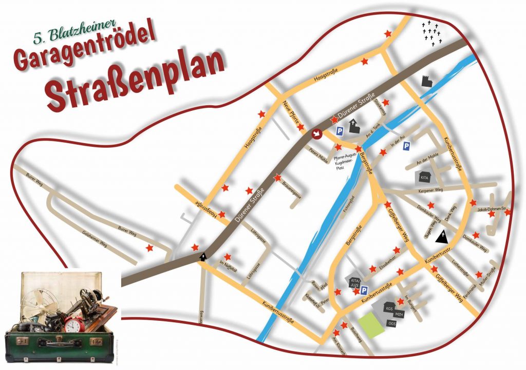 In diesem Jahr sind über 120 Teilnehmer am Start und bieten ihre Waren bei hoffentlich sonnigem Trödelwetter an. Den aktuellen Straßenplan gibt es hier zum Download.