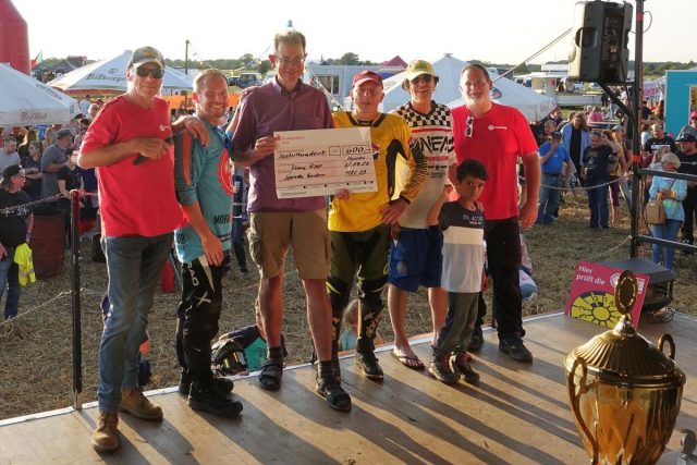So freute sich Ripp, dass Frank Nowak, Ingo Lauterbach und weitere Verantwortliche des ORGA-Teams den großen Spendenscheck aus dem letzten Jahr vor Beginn der Siegerehrung überreichten. Vielen Dank, dass auch diese Tradition die Corona-Pause überstanden hat!