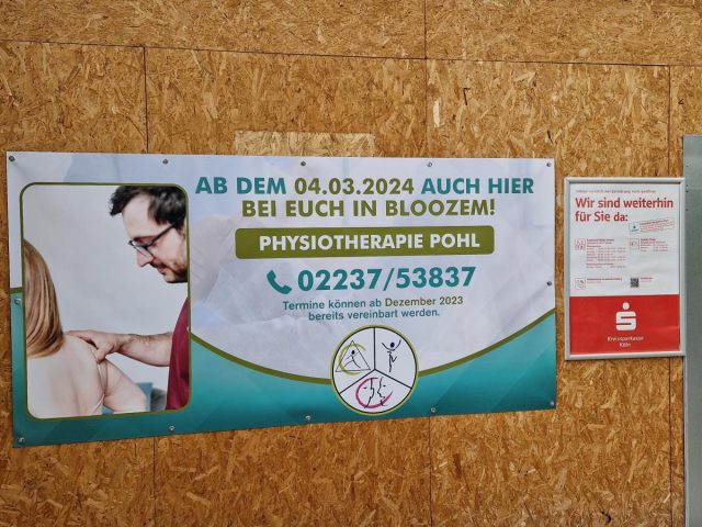 Wie schon auf einem großen Banner am Gebäude zu sehen ist, wird ab März 2024 die Physiotherapie Pohl dort Praxisräume eröffnen.