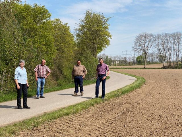 Die Ortsvorsteher Lonie Lambertz und Klaus Ripp informierten sich im Gespräch mit den Ortslandwirten Thomas Bremer und Michael Grass über die Problematik und appellieren gemeinsam auf gegenseitige Rücksichtnahme und Achtung der Acker- und Naturflächen.
