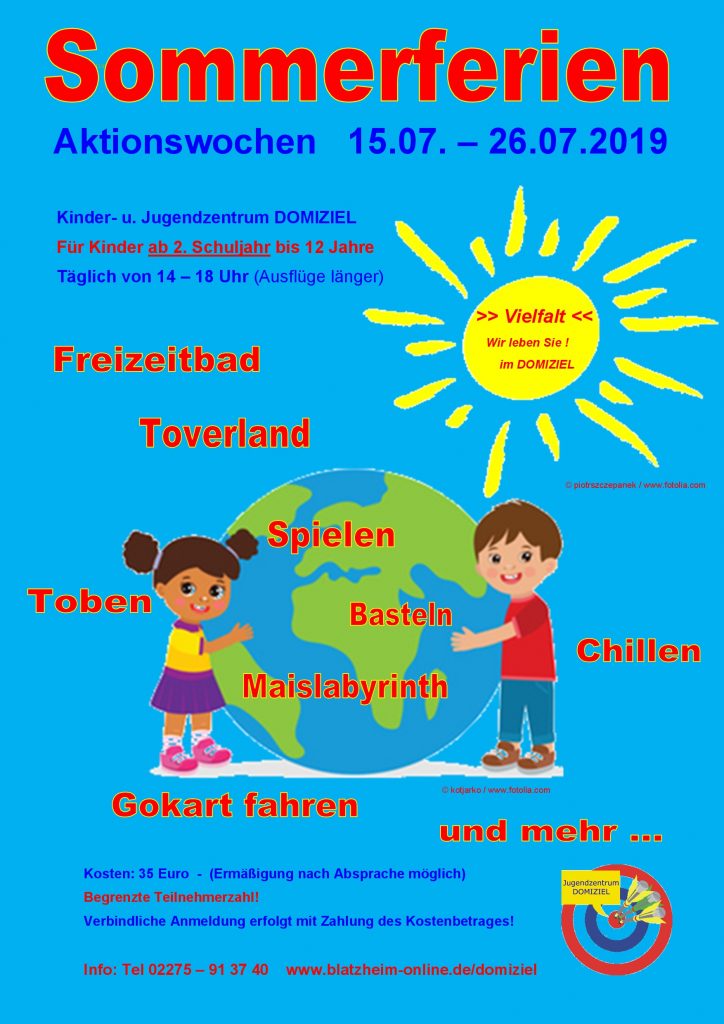 Im Kinder- und Jugendzentrum DOMIZIEL finden vom 15.07. – 26.07. die Sommerferienaktionswochen statt.
