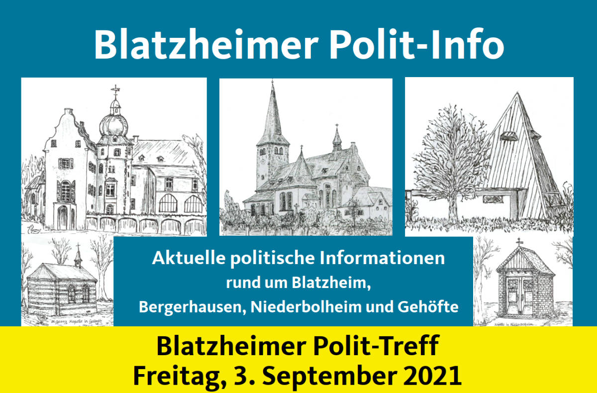 Stattdessen lädt die Blatzheimer CDU am Freitag, 3 September, zu einigen „Polit-Treffs vor Ort“ ein. Durch die Verteilung auf mehrere Standorte können die Coronaregeln eingehalten werden. Bei den Polit-Treffs steht auch der Bundestagsabgeordnete Dr. Georg Kippels Rede und Antwort. Ebenso beim „Blatzheimer Polit-Gespräch online“ am 13. September.