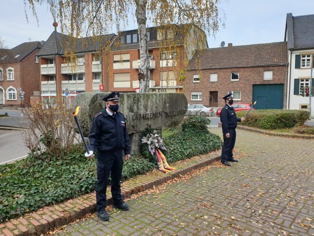 Die Kranzniederlegung begleitete Andreas Kluike vom Tambourcorps auf der Lyra. Ein Friedensgebet von Diakon Harald Siebelist und Fürbitten vorgetragen von Daniel Esser (Löschzugführer der Feuerwehr), Albert Weingarten (Brudermeister der Schützen) und dem stellv. Landrat Bernhard Ripp beendete die Gedenkfeier.