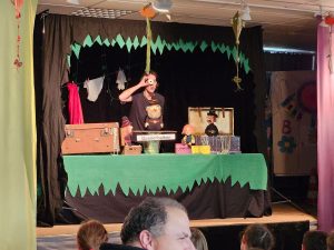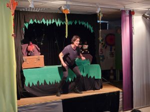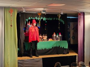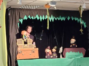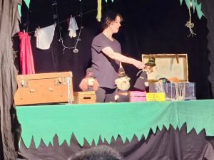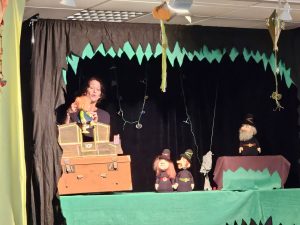 Esther Ribera vom Kindertheater Papperlapupp spielte mit ihren Figuren die Geschichte „Die drei Räuber“ nach dem gleichnamigen Kinderbuch von Tomi Ungerer und Robert Scheffner zeigte seine Geschichte „Griselda und der Geist der Weihnacht“.