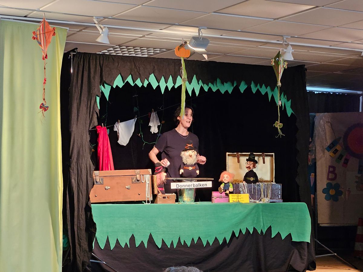 Esther Ribera vom Kindertheater Papperlapupp spielte mit ihren Figuren die Geschichte „Die drei Räuber“ nach dem gleichnamigen Kinderbuch von Tomi Ungerer und Robert Scheffner zeigte seine Geschichte „Griselda und der Geist der Weihnacht“.