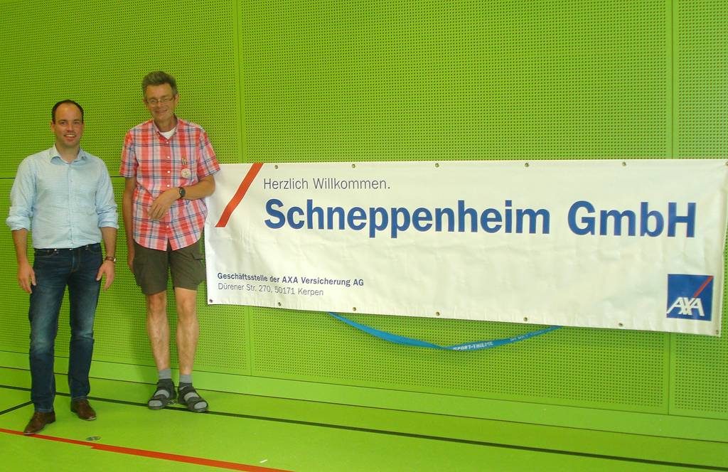 Schon seit vielen Jahren ist die AXA-Geschäftsstelle von Hans-Peter Schneppenheim einer der Hauptsponsoren der Ferienspiele. Diesmal kam Christian Oemcke von der Blatzheimer Geschäftsstelle zur Zirkusvorführung und überreichte dem Leiter der Ferienspiele Klaus Ripp wieder eine großzügige Spende.