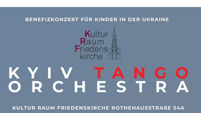 Das Ensemble Kyiv Tango Orchestra veranstaltet u.a. in der Friedenskirche in Köln-Ehrenfeld, Rothehaustraße 54a, am kommenden Freitag, 27.01.23, um 20.00 Uhr ein Benefizkonzert für Kinder aus der Ukraine. Das Ensemble kommt aus Kiew und tritt in einigen Konzerten in Deutschland auf. Der Eintritt ist frei. Es findet eine Kollekte für Kinder aus der Ukraine statt.