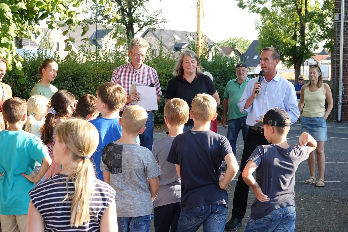 Der letzte Projekttag stand dann ganz im Zeichen der öffentlichen „Enthüllung“ der Kunstwerke. Zwei Kinder erklärten sich bereit, die Moderation der Abschlussveranstaltung zu übernehmen, an der rund 100 Gäste teilnahmen.