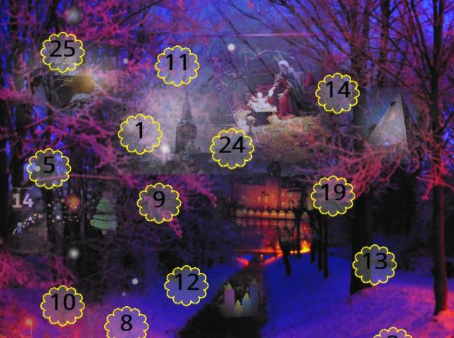 Nutzen Sie die Zeit zu einem abendlichen Spaziergang (unter den aktuellen Corona-Bedingungen) zum jeweiligen Adventsfenster. Dort kann in diesem Jahr keine Feier stattfinden, aber in “Adventstüten” stehen von 17.30 Uhr bis 20.00 Uhr Lose zum mitnehmen bereit. Lose bitte in der Bücherei bis zum 24. Dezember abgeben. Dort gibt es dann um 10.00 Uhr die Verlosung von Buch- und Kinogutscheinen sowie Gutscheinen der örtlichen Gastronomie.