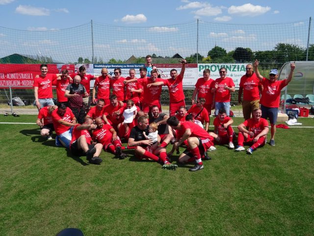 Derart jubeln konnten die Blatzheimer zuletzt 2016, als die Erste in die Kreisliga B aufstieg. Bei der Meisterfeier auf dem alten Sportplatz gab es jedoch ein jähes Ende, als ein Nachbar mit einer Waffe ankam und mit einem Schuss den damaligen Vorsitzenden an der Hand verletzte.