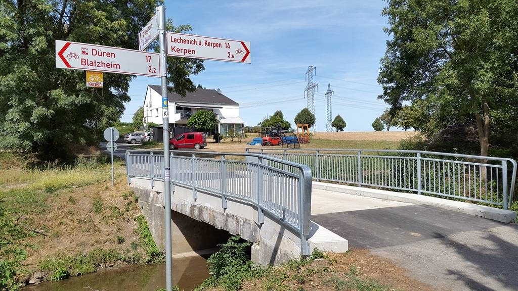 Bereits im Mai war die eigentliche Brückensanierung am Teschenhof in Bergerhausen abgeschlossen und man konnte wieder sicher den Neffelbach überqueren.