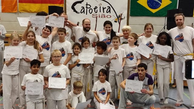 Beim diesjährigen Batizado-Fest in Düren wurde Sebastian Kaufmann, Lilli Gier, Nila Ehrhardt, Jordan Sprünker, Mohammed Alkabi, Dean Mautner und Gabriel Pajewski der erste Capoeira-Gürtel (Corda) verliehen.