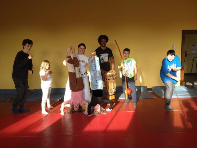 Kinder und Jugendliche im Alter von 7 – 14 Jahren üben seit Mai jeden Mittwoch im DOMIZIEL Capoeira.
