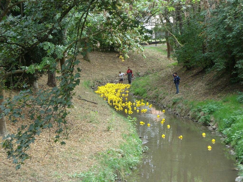 „Not macht erfinderisch“, heißt es im Volksmund. Seit fast 20 Jahren führt der SV-Blatzheim das Entenrennen auf dem Neffelbach durch und auf dem Pfarrer-August-Kugelmeierplatz können die Entenbesitzer die Rennen bei Speis und Trank verfolgen.