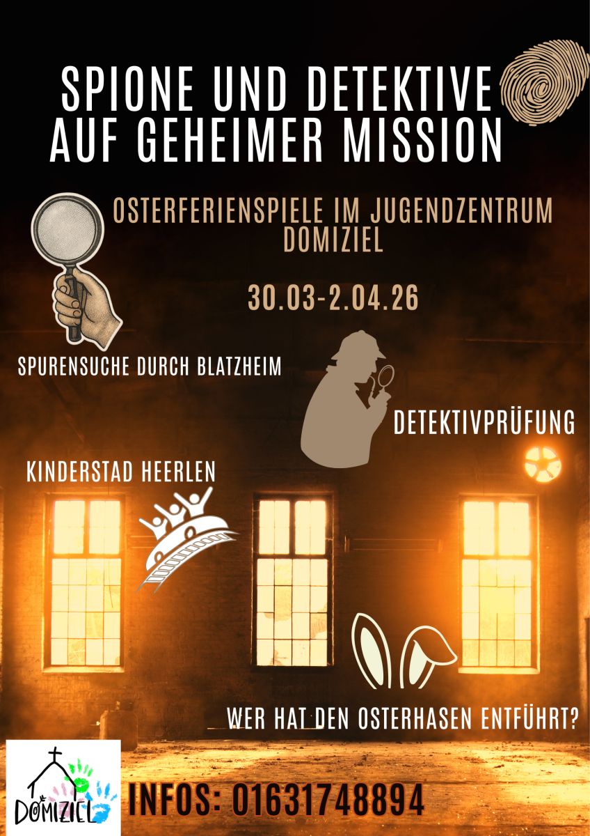 Weitere Informationen sowie Anmeldemöglichkeiten zu den Osterferienspielen 2026 sind im Jugendzentrum DOMIZIEL oder unter 01631748894 oder 015735675079 möglich.