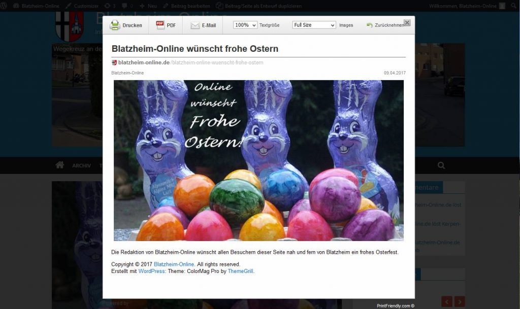 Möchten Sie einen Artikel von Blatzheim-Online drucken, als PDF-Dokument erstellen oder direkt als Mail an Freunde und Bekannte senden?