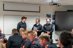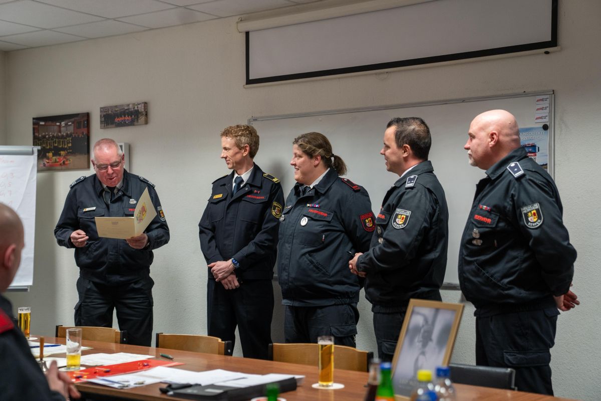 Doneta Fwansoni und Lorraine Paffenholz erhielten ihre Ernennung zu Oberfeuerwehrfrauen. Stefan Wendt wurde zum Hauptfeuerwehrmann befördert. Benjamin Brückner, Robin Funke und Karsten Zimmer wurden zum Unterbrandmeister befördert. Eine besondere Anerkennung erhielt Tom Gruttke mit seiner Beförderung zum Brandoberinspektor. Für Ihre 10-jährige Mitgliedschaft in der Feuerwehr erhielten Valerie Berger, Ramon Stollenwerk und Alexander Söbbing die Sonderauszeichnung des Verbandes der Feuerwehren in Bronze.