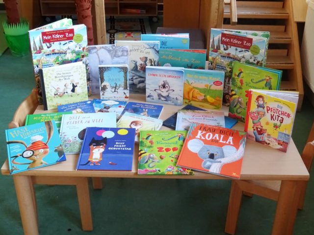 Über einen vollen Tisch neuer Bilderbücher freuen sich die Kinder der „KiTa in der alten Schule“. Der Ortsausschuss finanzierte die neue Lektüre im Wert von rund 350 Euro aus dem Fonds „Kinder- und Jugendarbeit“ der Pfarrgemeinde St. Kunibert. Das Kita-Team hatte im Vorfeld eine Liste mit Wunschtiteln zusammengestellt.