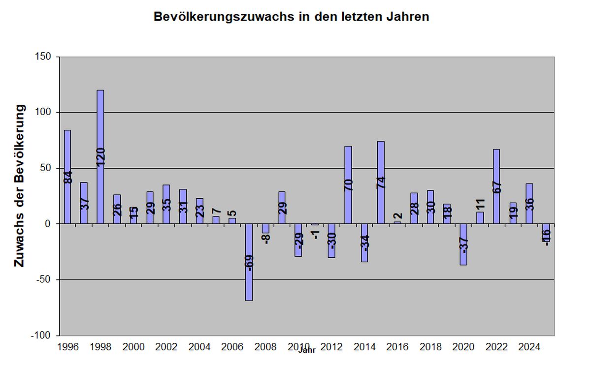 Im Jahr 2025 ist die Bevölkerungszahl im Vergleich zum letzten Jahr um 16 Personen gesunken.