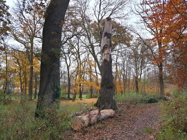 Der legendäre Elefantenbaum im Park der Burg Bergerhausen musste jetzt weiter gestutzt werden. Zumindest blieb ein großer Teil des Stamms als Habitatbaum erhalten und die Legende kann weiterleben.