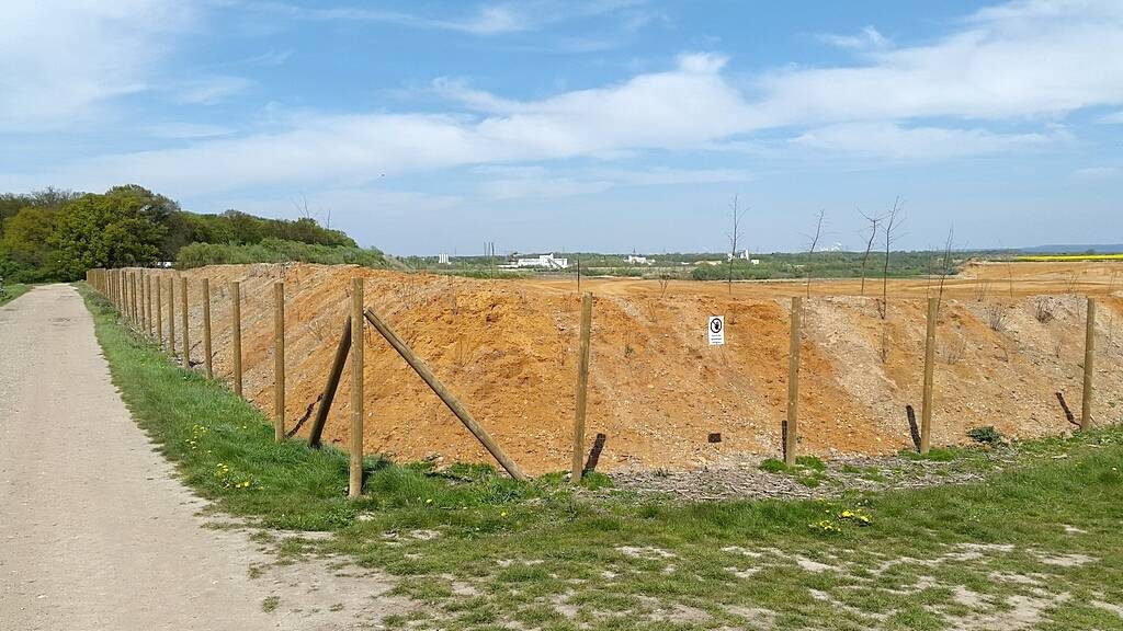 Die Erweiterung der Kiesgrube Nowotnik in Richtung Niederbolheim und Giffelsberg ist im vollen Gange. Mittlerweile wurde der angelegte Erdwall bepflanzt.