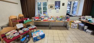 Mit diesem Erfolg hatte der Vorstand des Fördervereins der KiTa Rasselbande nicht gerechnet. Angebot und Nachfrage nach gebrauchten Kindersachen waren riesig. Rund 1.200 Teile von Spielzeug bis zur Kleidung wechselten den Besitzer. 59 Aussteller hatten ihre Sachen ins Kunibertus-Haus gebracht, wo sie von den Helferinnen nach Größen und Themen sortiert wurden. Zusätzlich gab es eine Cafeteria mit vielen selbst gebackenen Kuchen.