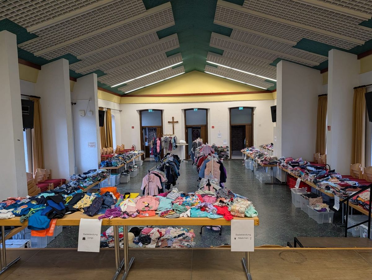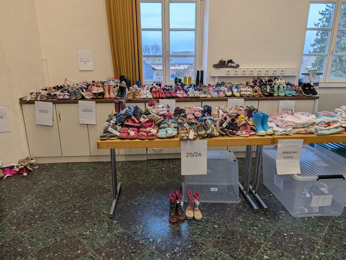 Mit diesem Erfolg hatte der Vorstand des Fördervereins der KiTa Rasselbande nicht gerechnet. Angebot und Nachfrage nach gebrauchten Kindersachen waren riesig. Rund 1.200 Teile von Spielzeug bis zur Kleidung wechselten den Besitzer. 59 Aussteller hatten ihre Sachen ins Kunibertus-Haus gebracht, wo sie von den Helferinnen nach Größen und Themen sortiert wurden. Zusätzlich gab es eine Cafeteria mit vielen selbst gebackenen Kuchen.