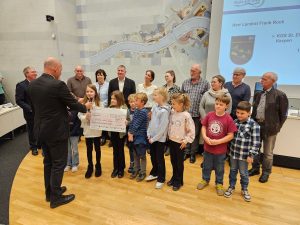 Landrat Frank Rock zeichnete nun im Kreishaus in Bergheim die sieben erfolgreichsten Schulen aus. Viele Zweier-Teams aus Blatzheim waren gemeinsam mit Schulleiterin Judith Beerbaum vor Ort, um die Urkunde in Empfang zu nehmen. Neben der Urkunde gab es auch in diesem Jahr einen Scheck über 1.000 Euro. „Natürlich wird auch diesmal unser Schülerparlament bei der Entscheidung eingebunden, was wir mit dem Geld machen“, sagten Beerbaum und die Kinder übereinstimmend.