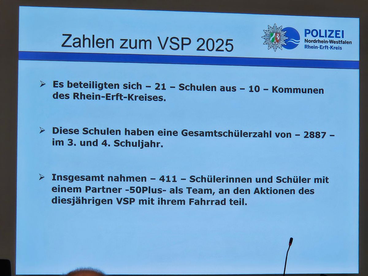 Die Kinder der dritten und vierten Klassen waren eingeladen, in Begleitung eines Erwachsenen im Alter Ü50 einen Fahrradparcours zu bewältigen, um sicherer auf dem Fahrrad zu werden. Die Maßnahme wurde von der Rhein-Erft-Kries-Polizei durchgeführt.