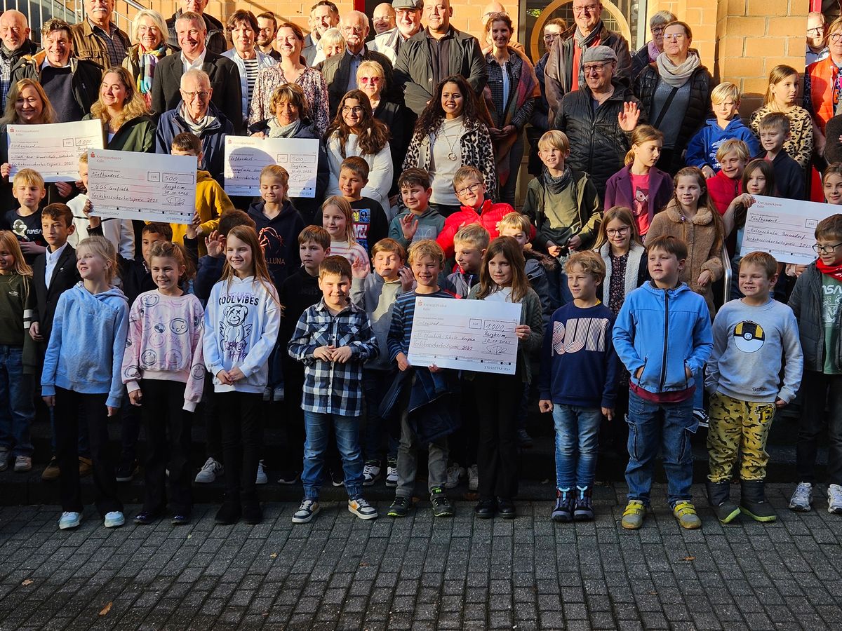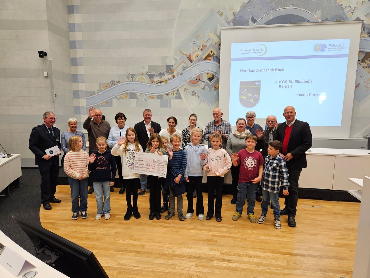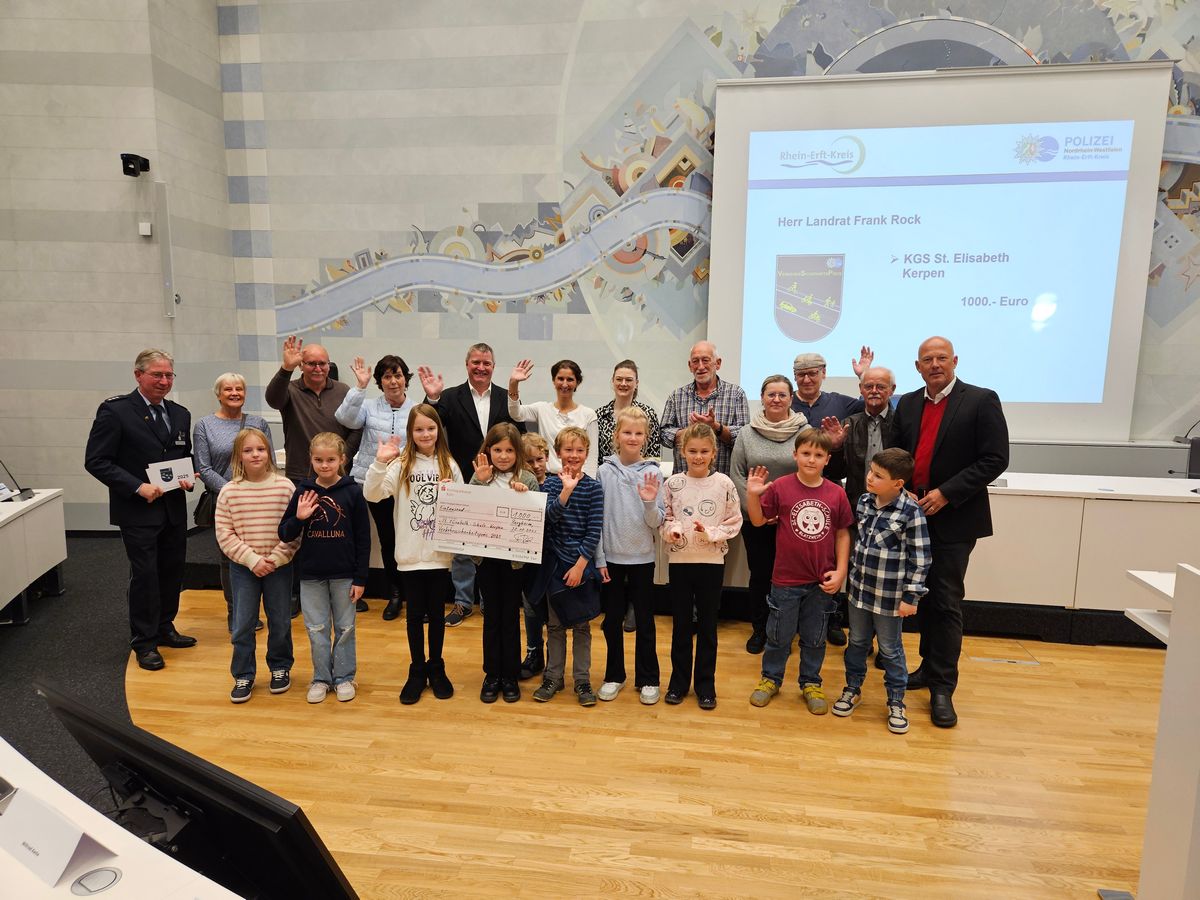 Landrat Frank Rock zeichnete nun im Kreishaus in Bergheim die sieben erfolgreichsten Schulen aus. Viele Zweier-Teams aus Blatzheim waren gemeinsam mit Schulleiterin Judith Beerbaum vor Ort, um die Urkunde in Empfang zu nehmen. Neben der Urkunde gab es auch in diesem Jahr einen Scheck über 1.000 Euro. „Natürlich wird auch diesmal unser Schülerparlament bei der Entscheidung eingebunden, was wir mit dem Geld machen“, sagten Beerbaum und die Kinder übereinstimmend.