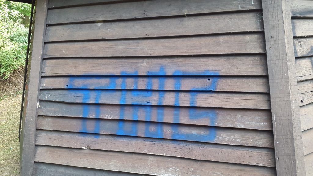 In der Nacht von Freitag, 7 Juli auf Samstag, 8. Juli haben Unbekannte auf dem Grillplatz mit Farbe ihr Unwesen getrieben. Grillhütte, Bänke, Dixi-Klo und Straße wurden teilweise mit Farbe besprüht.