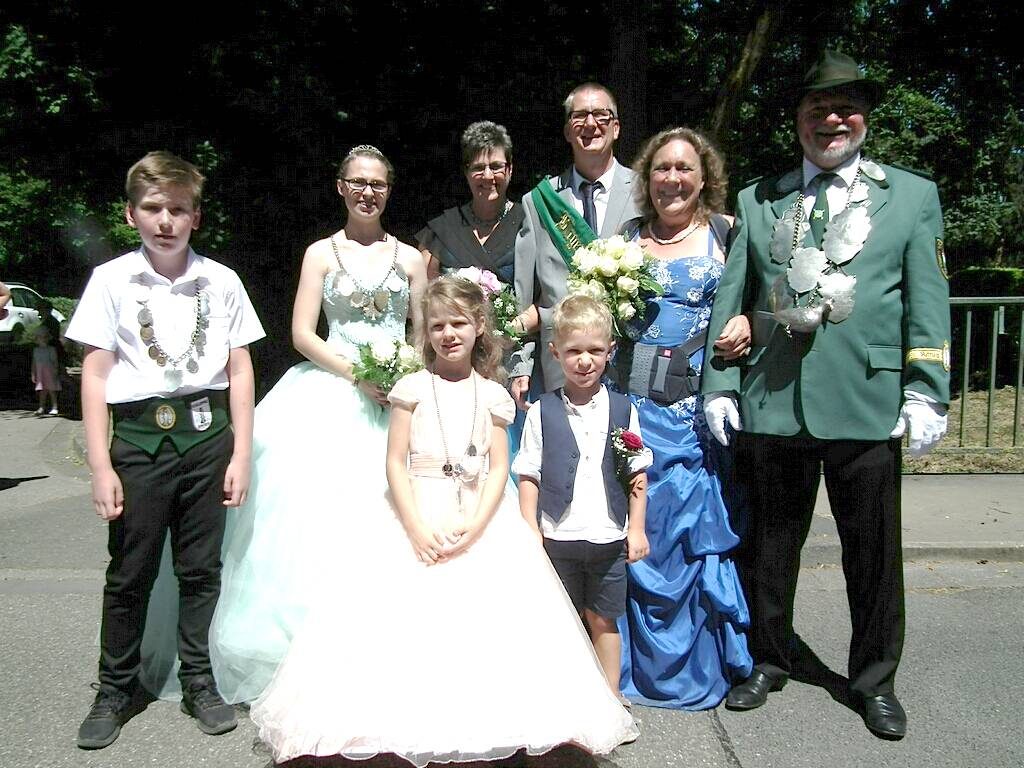 Nachdem Festzug spielte die zur Ehre der Majestäten und zur Freude der vielen Gäste die „Blatzheim Highlander Pipe Band“ unter Leitung von Peter Oepen. Besonders für den König gab es als Zugabe das Steigerlied.