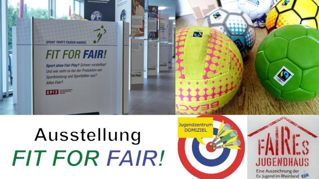 Die Ausstellung FIT FOR FAIR! beschäftigt sich mit der Frage, wer eigentlich all die Sportartikel, von der Kleidung bis zum Ball, produziert – und unter welchen Bedingungen dies geschieht. „Fair Play, bereits vor dem Spiel“ ist das Motto der Ausstellung: Sie zeigt Missstände bei der Sportartikelproduktion auf und gibt Anregungen dafür, wie sich ein Zeichen für Nachhaltigkeit und Fair Trade setzen lässt.