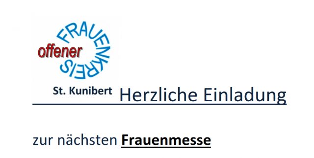Jeden 2. Dienstag im Monat lädt der „Offene Frauenkreis“ der Pfarrgemeinde St. Kunibert um 9.30 Uhr zur Frauenmesse ein. Thema am 10. Mai ist „Maria – Eine von uns.“