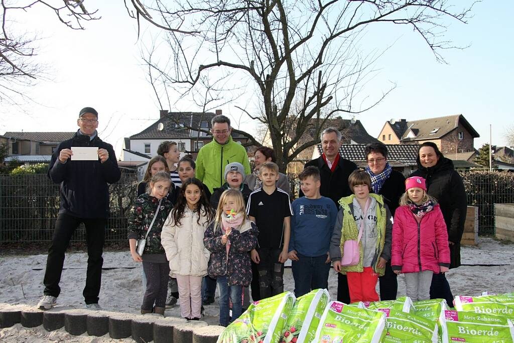 Mit einer Spende von 200 Euro wurde das Projekt nun von der Erftland Kommunale Wohnungsgesellschaft mbH – Eigentümer der alten Grundschule – unterstütz. Bei einem Ortstermin überreichte Geschäftsführer Christian Nielsen nun den Scheck an die Akteure vor Ort.