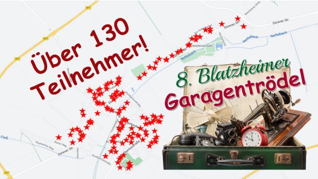 Angemeldete Teilnehmer zum 8. Blatzheimer Garagentrödel am 07.04.2024, 11.00-17.00 Uhr: