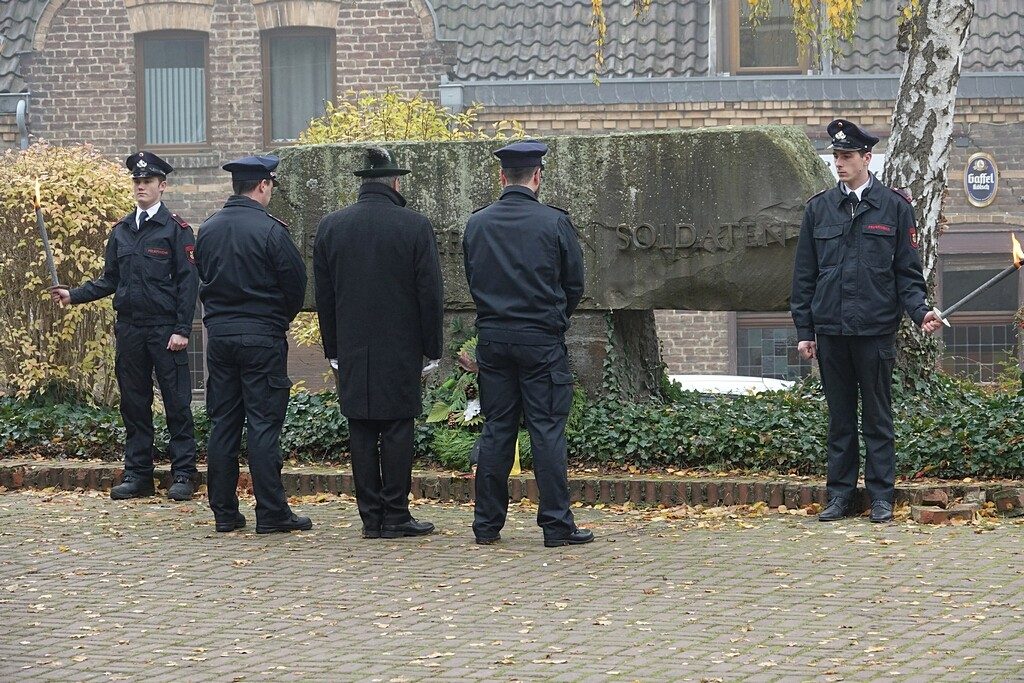 Auch in diesem Jahr versammelten sich am Volkstrauertag nach der Sonntagsmesse wieder viele Messbesucher und zahlreiche Vertreter der Vereine am Ehrenmal auf dem Pfarrer-Wolters-Platz, um der Opfer von Krieg und Gewalt zu gedenken.