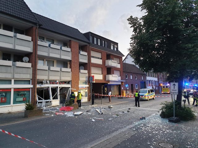 Jäh beendet wurde die Nacht zum Samstag für die Anwohner der Kreissparkasse durch eine Explosion im Eingangsbereich der Kreissparkasse. Wie bereits in vielen anderen Orten haben Unbekannte den Geldautomaten gesprengt. Glücklicherweise wurde niemand verletzt und auch die Wohnungen oberhalb der Kreissparkasse können weiter genutzt werden. Ob und wie viel Geld die Täter erbeuten konnten, ist noch unklar.
