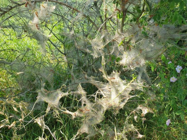 Meistens handelt es sich um das Gespinst der Gespinstmotte. Raupen und Falter der Gespinstmotten sind harmlos, auch die Fraßschäden sind nicht gravierend; die Bäume und Büsche treiben mit dem Johannistrieb (Ende Juni) wieder aus. Die Eichenprozessionsspinner gehen in der Regel nicht an Sträucher, sondern nur an Eichen. Die Gespinste von Eichenprozessionsspinnern sind oft nur an einer oder wenigen Stellen im Baum. Wenn Büsche und Bäume komplett eingesponnen sind, ist es in der Regel die Gespinstmotte.