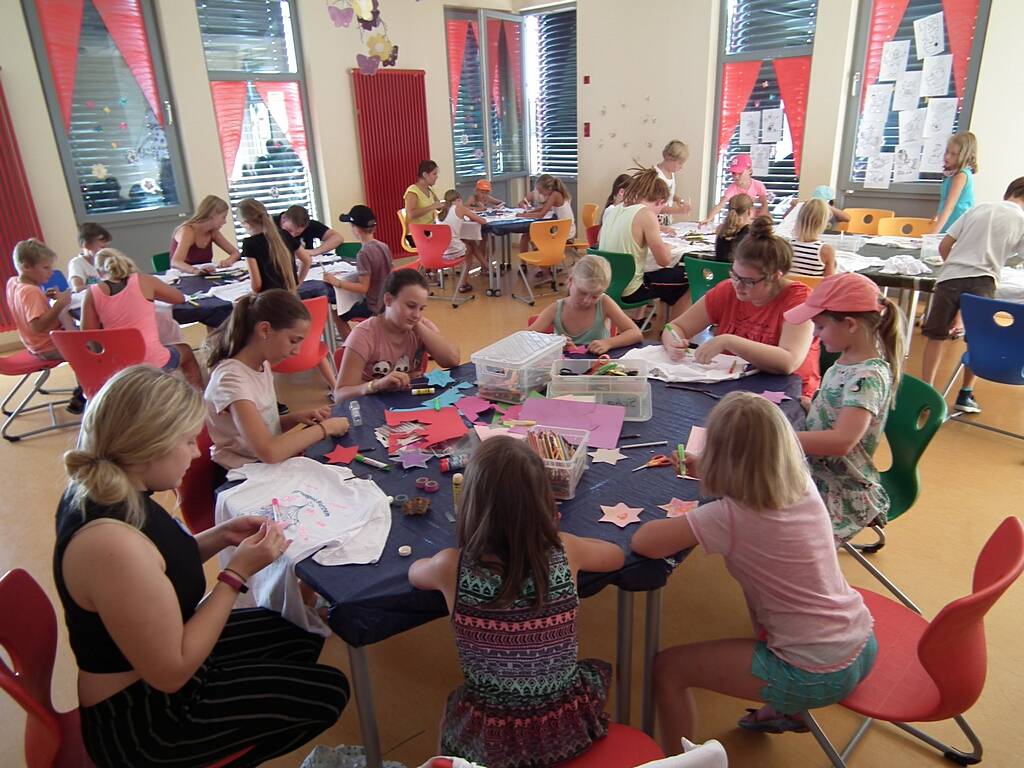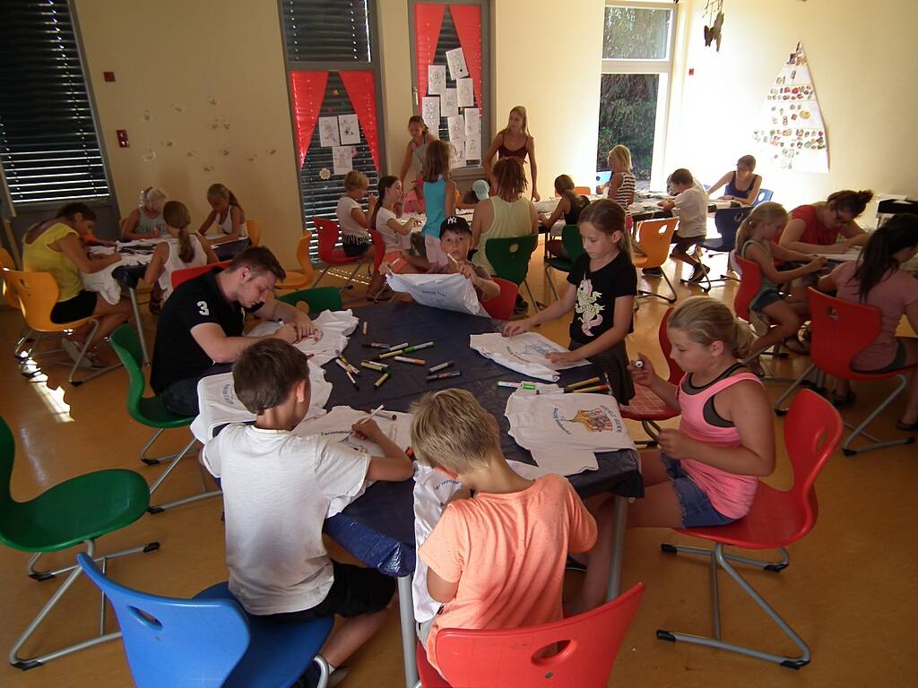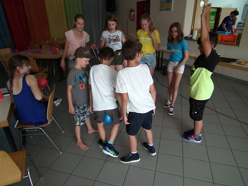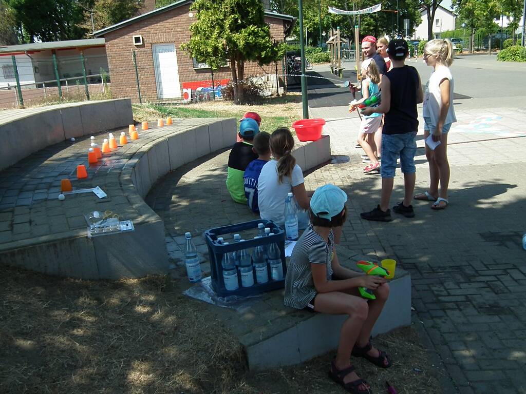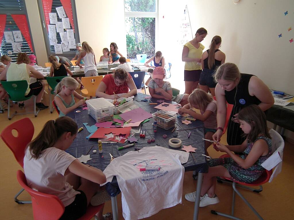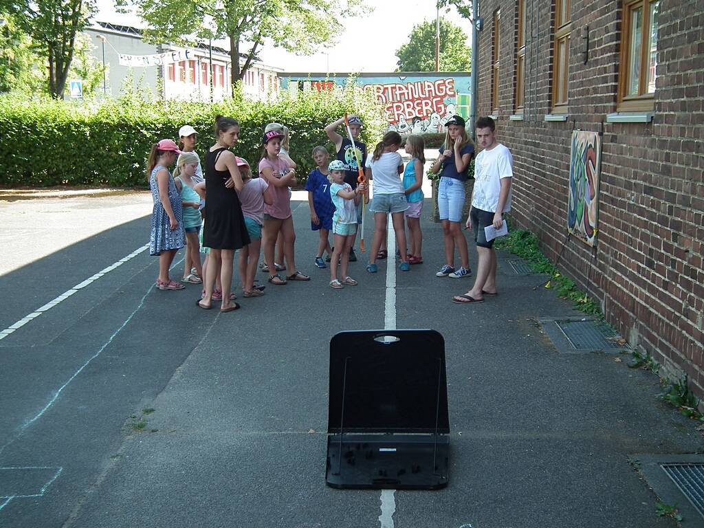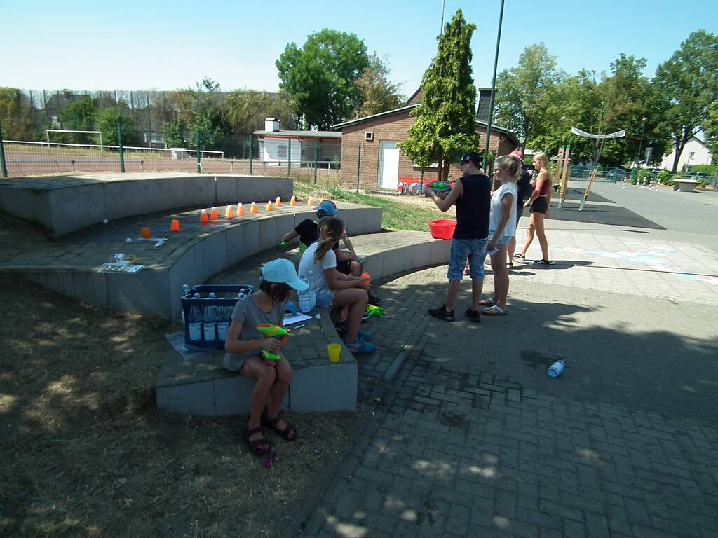 07.08.2018: Ferienspiele 2018 - 2. Tag. Es war mit 38 Grad der heißeste Tag jemals bei den Ferienspielen. Haus-Rallye und Ferienspiele-T-Shirts.