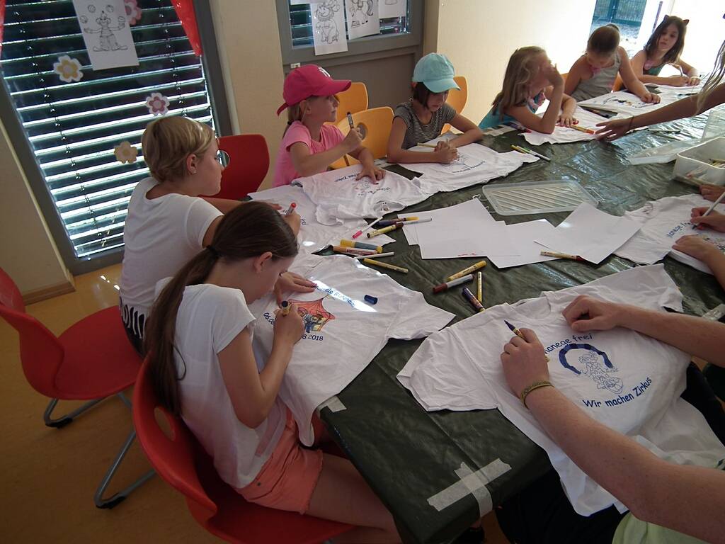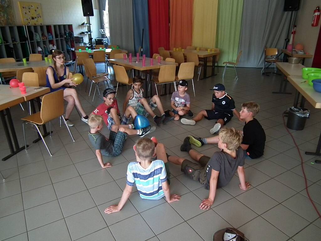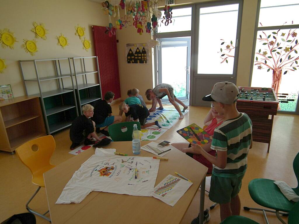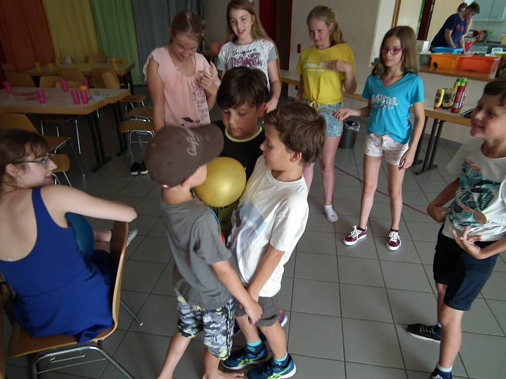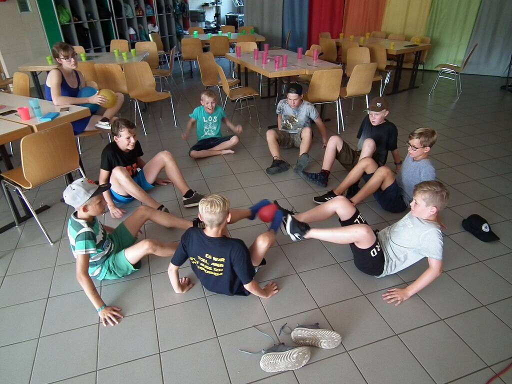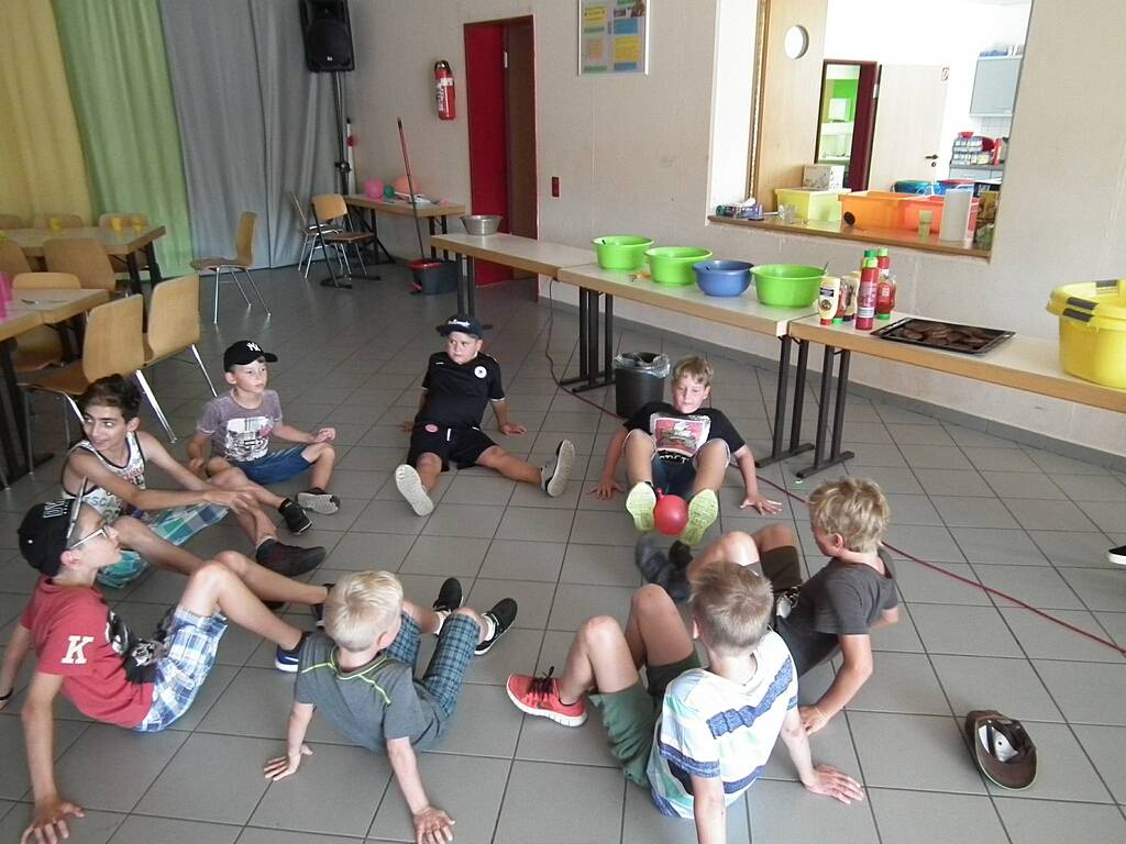 07.08.2018: Ferienspiele 2018 - 2. Tag. Es war mit 38 Grad der heißeste Tag jemals bei den Ferienspielen. Haus-Rallye und Ferienspiele-T-Shirts.