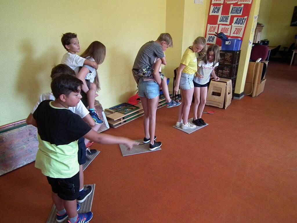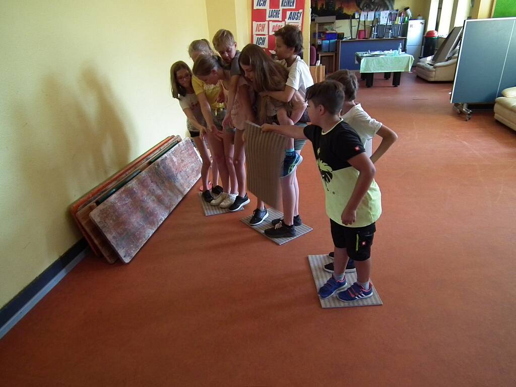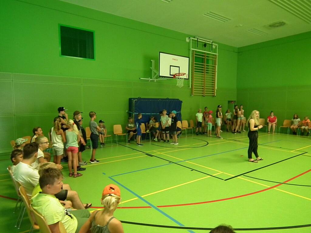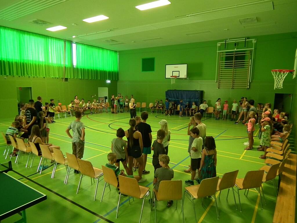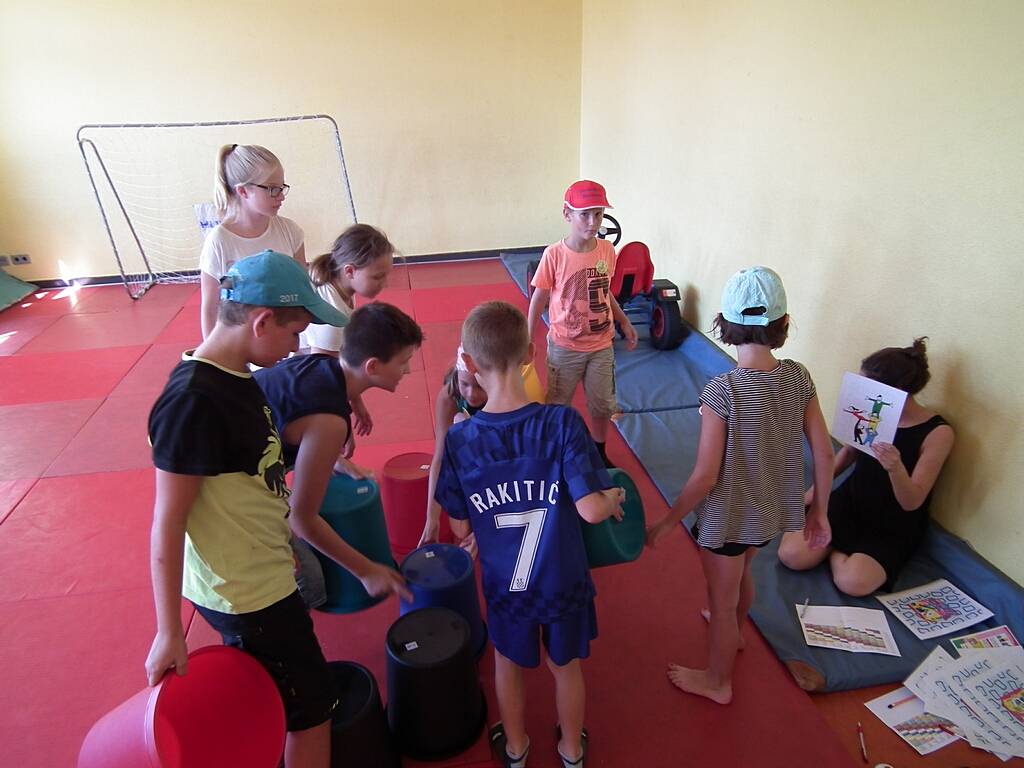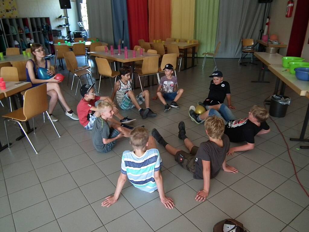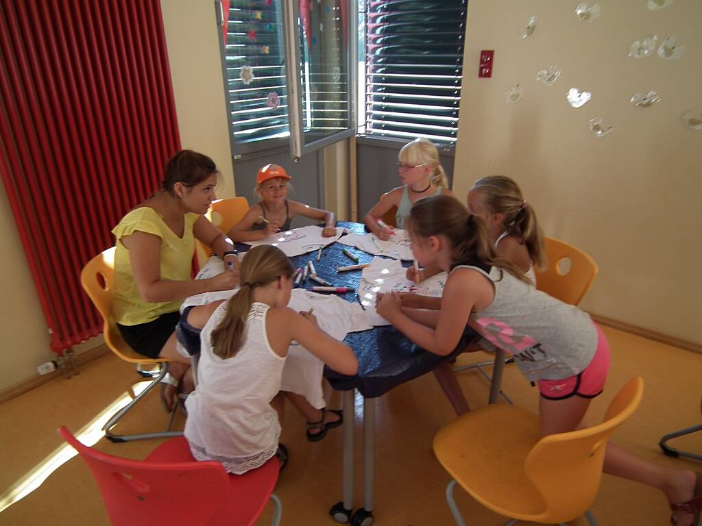 07.08.2018: Ferienspiele 2018 - 2. Tag. Es war mit 38 Grad der heißeste Tag jemals bei den Ferienspielen. Haus-Rallye und Ferienspiele-T-Shirts.