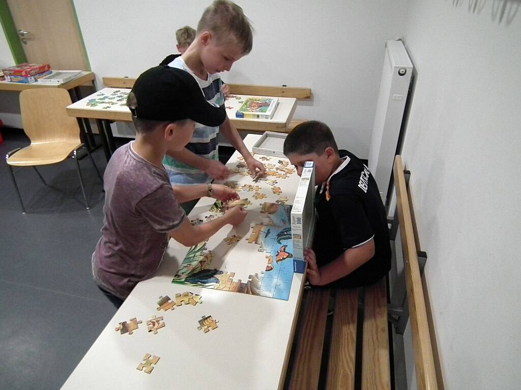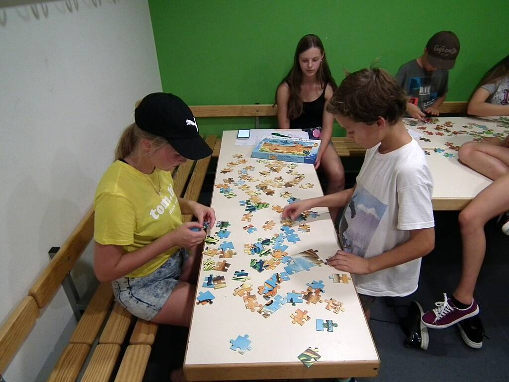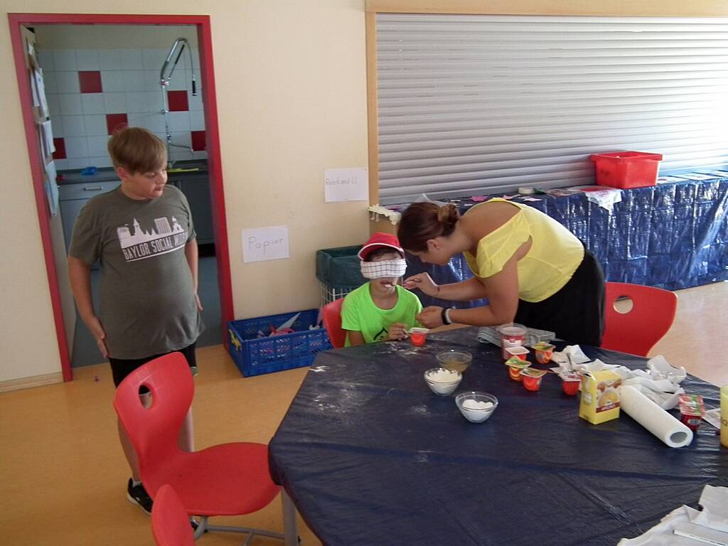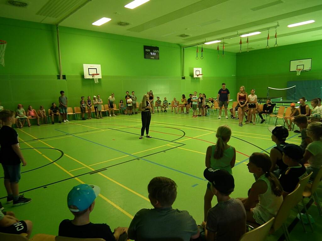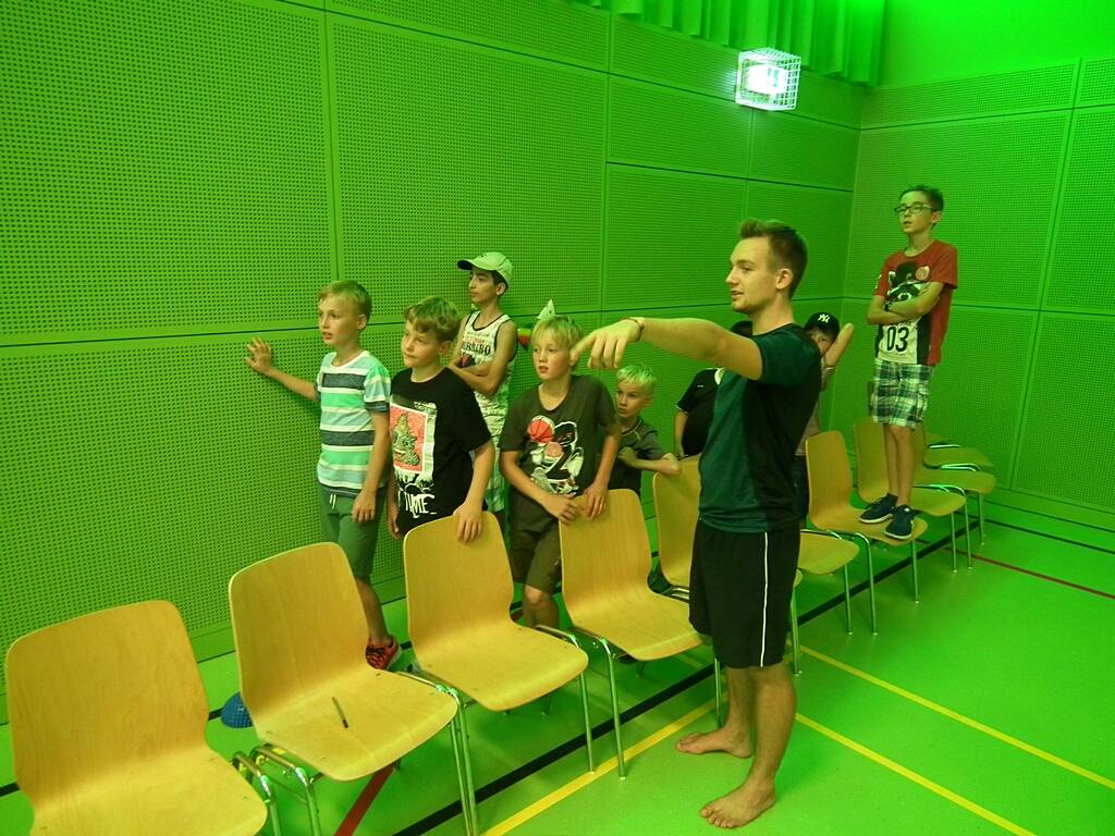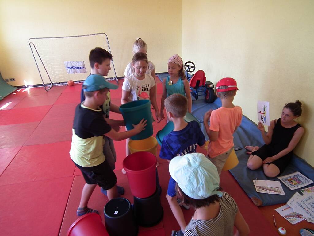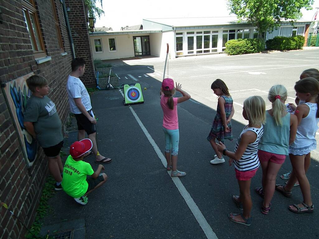 07.08.2018: Ferienspiele 2018 - 2. Tag. Es war mit 38 Grad der heißeste Tag jemals bei den Ferienspielen. Haus-Rallye und Ferienspiele-T-Shirts.