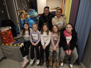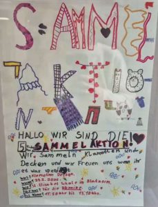Neben vielen anderen Projekten entwickelten fünf Schülerinnen die Idee, Kleidung und Decken für die Ukraine zu sammeln. Sie entwarfen dazu ein Plakat und riefen in ihrem Bekannten- und Freundeskreis zur Abgabe von Spenden auf. Und nun freuten sie sich über den Erfolg der Aktion, denn am Abgabetag kamen mehr volle Spendensäcke zusammen, als sie erwartet haben. Unterstützt wurden sie von ihrer Lehrerin und vom Hausmeister. Ortsvorsteher Klaus Ripp danke vor Ort den Kindern für ihr Engagement.