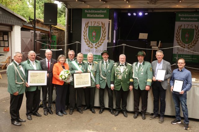 Auch Heinz Bücker wirkt bereits einige Jahrzehnte bei den Schützen in Blatzheim und vorher in Lich-Steinstraß. Er erhielt das St. Sebastianus Ehrenkreuz. Mit dem Silbernen Verdienstorden wurden Frank Hieb und Peter Küppers geehrt.