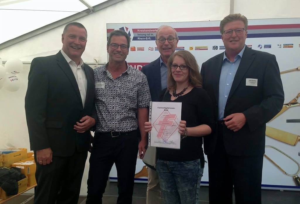 Als Innungsbeste der Fleischer-Innung Rhein-Erft im Bereich Fleischerfachverkäuferin schloss Larissa Ahrend ihre Ausbildung bei Metzgermeister Klaus Bongard ab.
