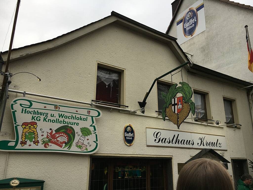 Unter den Klängen des Tambourcorps Edelweiß Blatzheim nahmen die Mitglieder der KG Knollebuure ihre karnevalistische Hochburg in Beschlag. Die Gaststätte Kreutz ist – wie in allen Jahren zuvor – „Hochburg und Wachlokal der KG Knollebuure“. Als äußeres Symbol wurde die „Knollebuure-Knolle“ heute in feierlicher Zeremonie am Gasthaus aufgehängt. Insbesondere die Tanzgruppe trifft sich hier vor den vielen Auftritten, die in den nächsten närrischen Wochen anstehen.