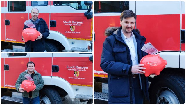 Mit einer großzügigen Spende in Höhe von 1.000 Euro besuchte Andreas Wagener von der Kreissparkasse Köln den Förderverein der Feuerwehr Blatzheim.