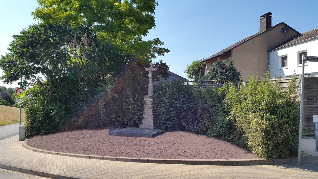 So musste jetzt der Boden vollständig ausgetauscht werden. Nun sollte die Pflege wieder einfacher durchführbar sein. Künftig übernimmt die Pfarrgemeinde St. Kunibert die Pflege von Kreuz und Vorplatz.